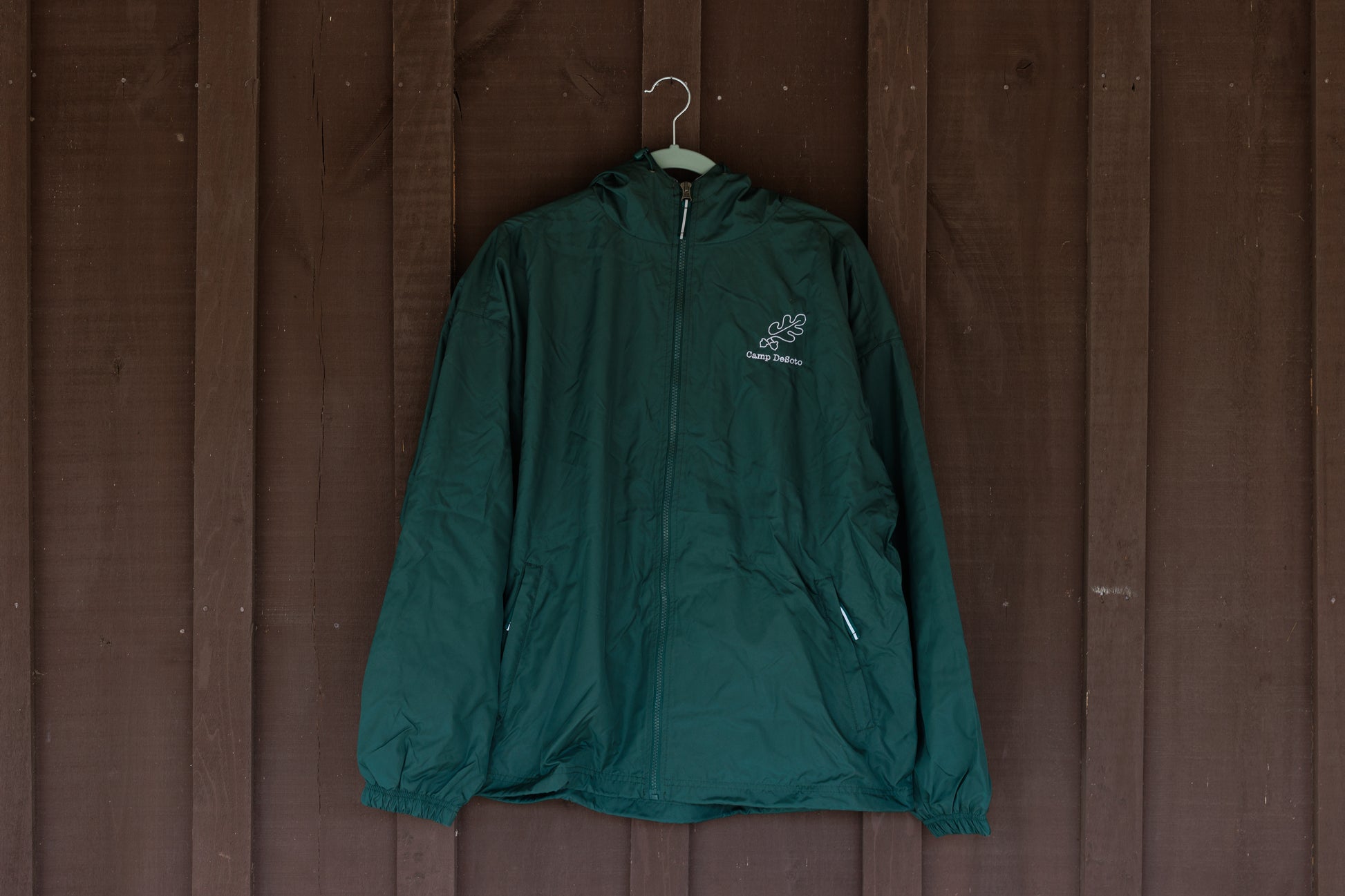 Charles River full-zip windbreaker from Charles River, embroidered with the Camp DeSoto leaf logo.