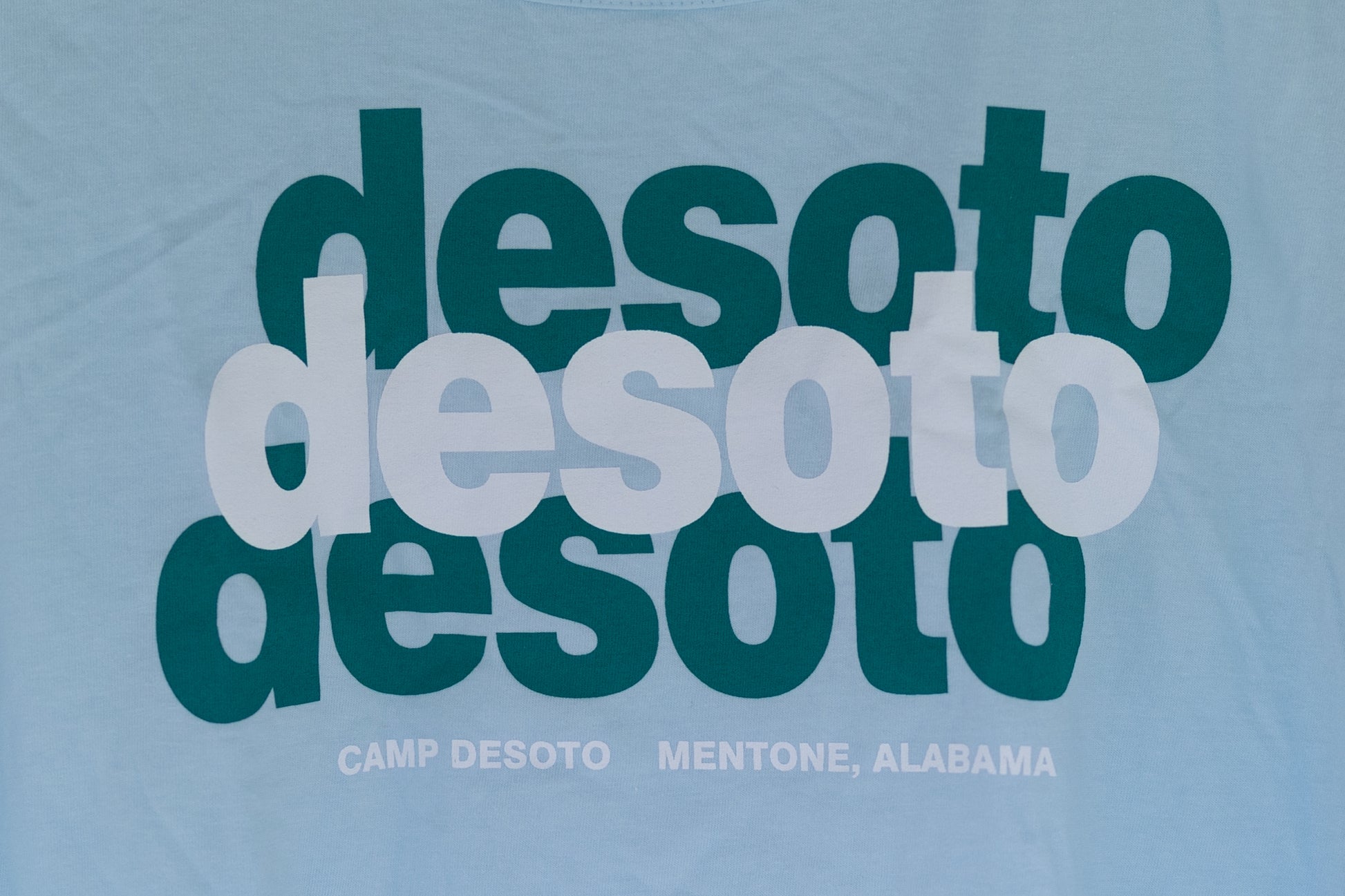 From the Vault! A Comfort Colors tank top in Chambray. The retro-inspired "desoto desoto desoto" is in a block letter design in green and white. Grab one before they are gone forever!